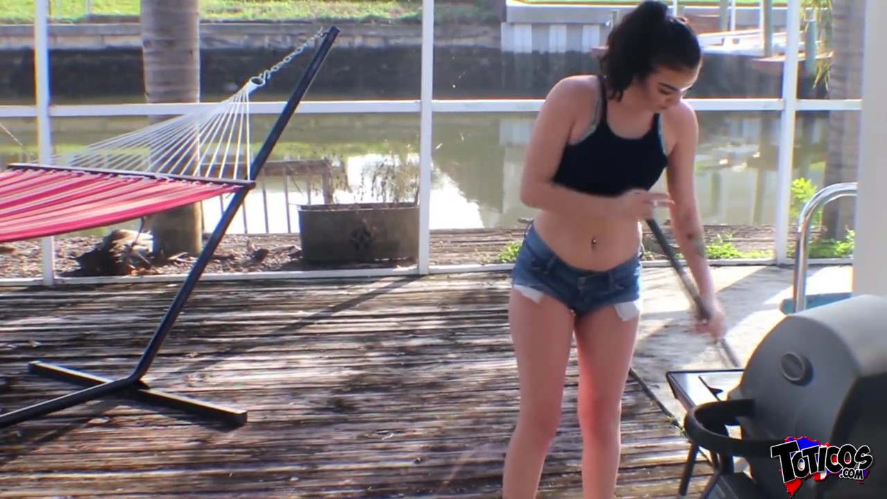 Chillin by the pool while sweeping the deck and smoking a menthol cigarette, thicc thighs Aries Ackerman wants to stroke big black cock instead of pushing a broom in the hot florida sun. This 18yo hottie came to Florida all the way from Madrid, Spain and I just had to cum on her tits before taking her inside the house for another round. Nice big tits with pink nipples and a spunky teen attitude to boot